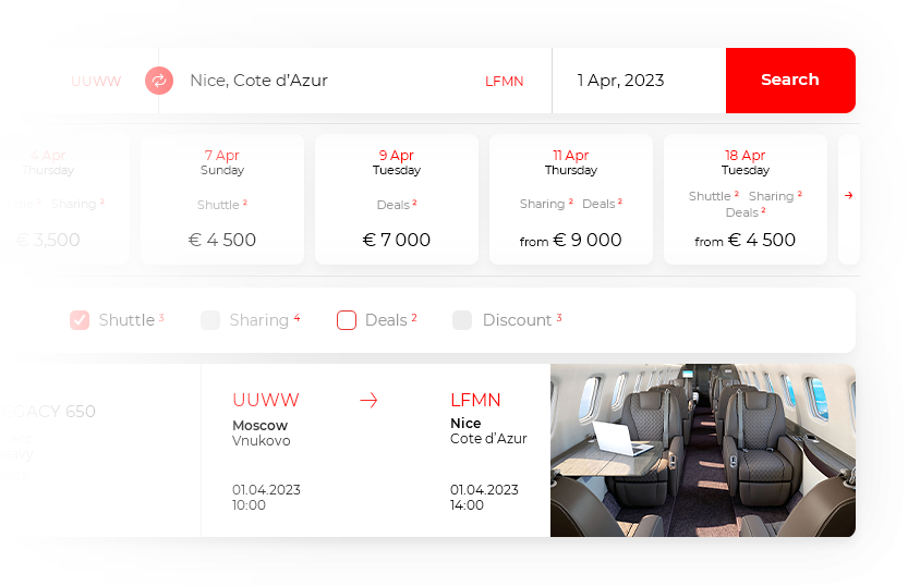 Start a new shared flight or join an existing one created by another passenger. It’s a flexible and cost-efficient way to experience private aviation.